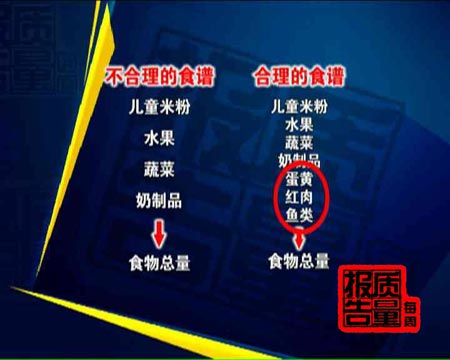 主持人:共同打造有质量的生活,这里是每周质量报告,大家好。最近20年来我国儿童营养工作取得了举世瞩目的成就,由于食物短缺而导致的传统型的营养不良从改革开放初的30%已经下降到了现在的8%,全球儿童营养不良率是25%,发展中国家这一数字是27%。那么,我国已提前十年完成了联合国儿童营养千年发展目标。但是,随着人们生活水平的不断提高,由于膳食搭配不合理导致的新的营养不良问题开始出现。