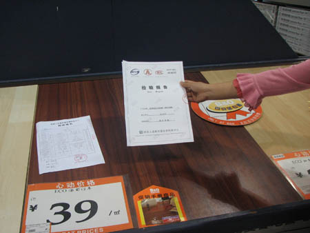 “媒体公布检测结果后,为了严谨起见,我们所有商店停售了这些地板。5月21日,我们拿到同样的监测机构接受检验,检验结果与厂家进货的检验完全一致,静曲强度、内结合强度、吸水厚度膨胀率、表面胶合强度、表面耐磨以及甲醛释放量等指标完全符合国家相关标准。”文东特别强调,进入百安居的地板必须经过五道"关口":第一是对厂家的选择,不可能授权小工厂生产地板。第二是工厂的验厂,百安居的采购人员和质量人员在签订合同前,要走访工厂,检验工厂的报表和相关指标,甚至包括是否使用童工、工厂食堂、员工住宿的墙壁是否有裂痕。第三工厂生产产品的放量,产品进入百安居前,必须得到权威机构的质量检测报告,不能提供质检报告的,不可能在百安居里销售。第四是必须通过百安居质检人员收货抽检。第五是销售过程中委托中国建材质量检测中心作为第三方随时抽查。