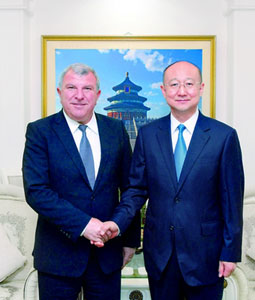 5月9日,质检总局局长支树平会见保加利亚农业与食品部部长格列科夫和保加利亚驻华大使苏邱尔列夫。宾主就两国农产品、动植物产品、食品贸易等议题进行了会谈。质检总局食品局、动植司、国际司等有关人员参加了会见。 李长春 摄