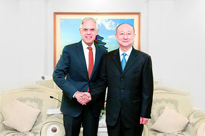 5月27日,质检总局局长支树平会见了墨西哥驻华大使温立安先生一行。宾主就两国动植物产品、食品贸易、申请地理标志保护等问题进行了会谈。质检总局动植司、食品局、科技司、国际司以及墨西哥驻华大使馆有关人员参加了会见。 李长春 摄
