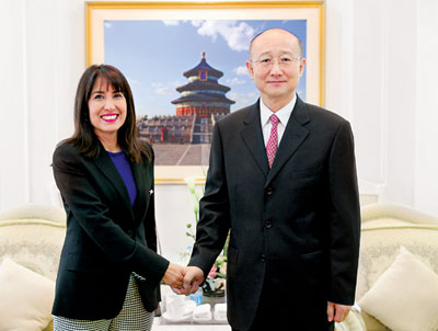7月15日上午,质检总局局长支树平在京会见了秘鲁外贸旅游部部长马佳丽·席尔瓦一行。双方就秘鲁乳制品、鳄梨、芦笋输华等共同关心的问题进行了广泛交谈。质检总局食品局、动植司、国际司等有关领导一同参加了会见。