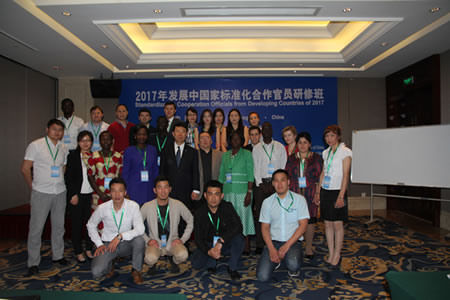 为积极服务国家“一带一路”建设,推动我国与“一带一路”沿线国家的标准化合作与交流,在商务部和质检总局的支持下,国家标准委于4月在常州举办了标准化合作发展中国家官员研修班。来自“一带一路”沿线的吉尔吉斯斯坦、蒙古、南苏丹等7个国家的25名标准化官员和专家参加了研修班。国家标准委郭辉副主任出席研修班,专题介绍我国国家标准化及国际标准化工作情况,并与学员们进行了深入交流。