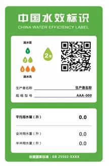 据水效标识授权备案管理机构中国标准化研究院相关人士介绍,水效标识是附在用水产品上的信息标签(如图1所示),用来表示产品的水效等级、用水量等性能指标,水效等级、用水量等性能指标是依据相关产品的水效强制性国家标准检测确定的。水效标识制度是针对终端用水产品水效水平提升的一项重要市场化管理制度,以提高产品水效为核心,促进产品质量提升的一项管理制度。根据《办法》规定,将采取企业自我申明、水效标识备案、市场监督检查的实施模式,以最小的社会成本引导企业节水技术创新,推广高效节水产品,提高用水产品市场总体水效水平。