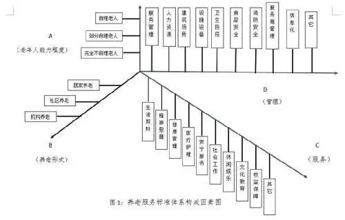 《指南》明确,应结合我国养老服务发展现状与趋势,从老年人自理能力、养老服务形式、服务、管理等四个维度,确定养老服务标准体系因素,并制成养老服务标准体系构成因素图。