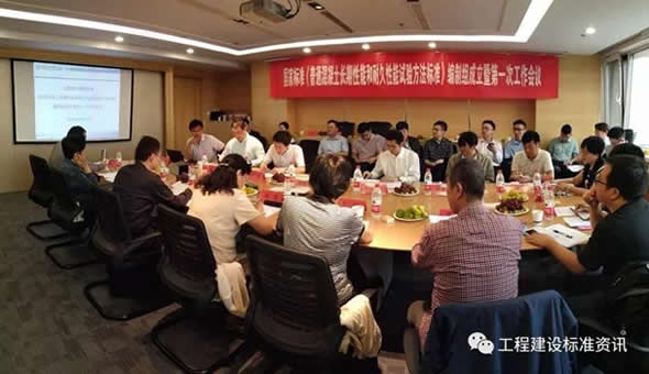 根据《住房城乡建设部<关于印发2017年工程建设标准规范制修订及相关工作计划>的通知》(建标[2016]248号)的要求,由中国建筑科学研究院主持修订工程建设国家标准《普通混凝土长期性能和耐久性能试验方法标准》(GB/T 50082-2009)(以下简称《标准》),标准编制组成立暨第一次工作会议于2017年9月27日在北京召开。住房和城乡建设部建筑工程质量标准化技术委员会何瑞博士、中国建筑科学研究院标准规范处处长助理李小阳副研究员、中国建筑科学研究院建材所总工冷发光研究员以及编制组全体成员参加了本次会议。
