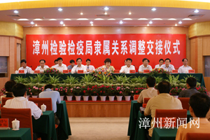 福建省政府副秘书长林昌丛、国家质检总局人事司司长张沁荣、福建检验检疫局局长吴绍炳、厦门检验检疫局局长詹思明出席交接仪式并讲话。