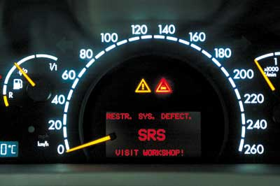 一辆全身都是毛病的车内显示屏上不停闪烁安全气囊系统出问题的警告标志IC/供图