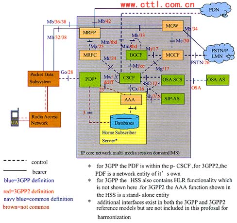 3GPP2定义的cdma2000全IP网络结构的多媒体域(MMD)核心网主要包括两个子系统:分组数据子系统和IP多媒体会话子系统。这里的IP多媒体会话子系统与3GPP的IMS子域相对应,其演进方式基本相似。