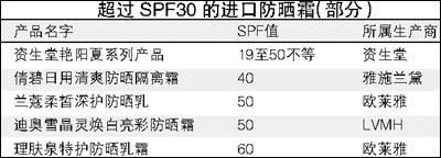 昨日,记者就此走访了北京几家综合型百货商场发现,部分厂商生产的防晒霜的SPF值都已换成30+以下。