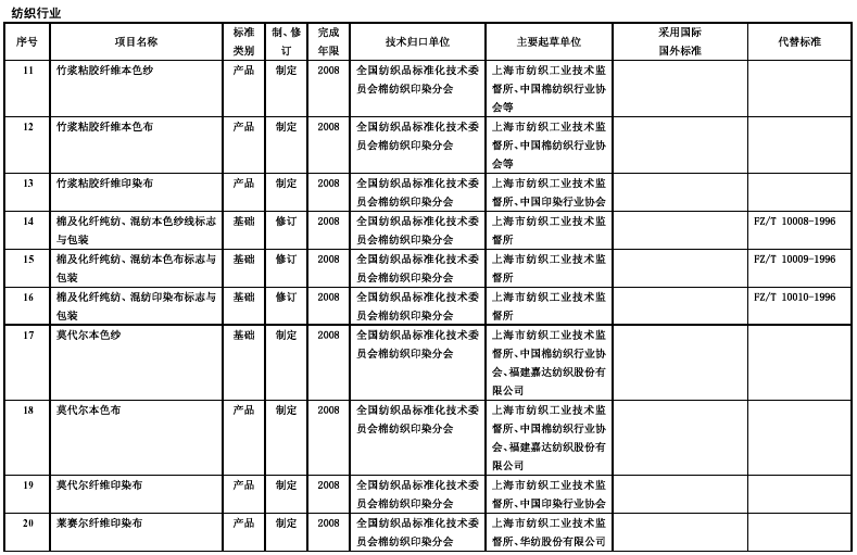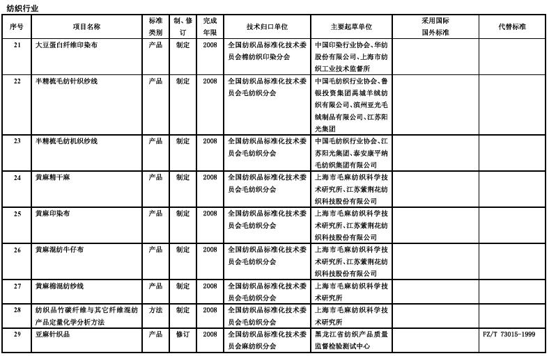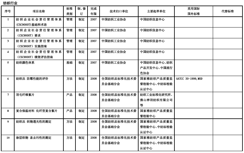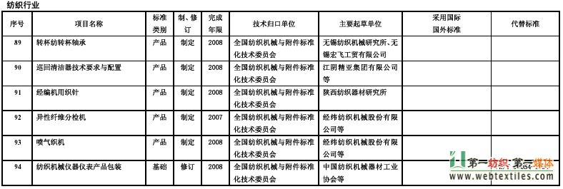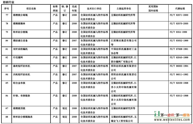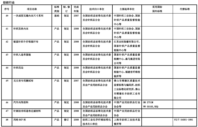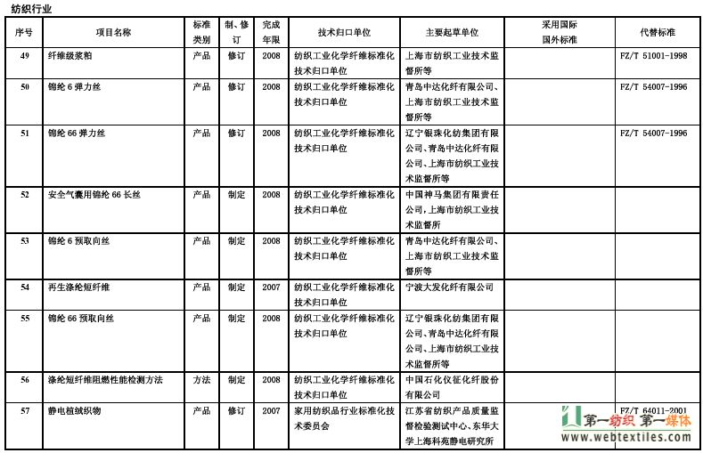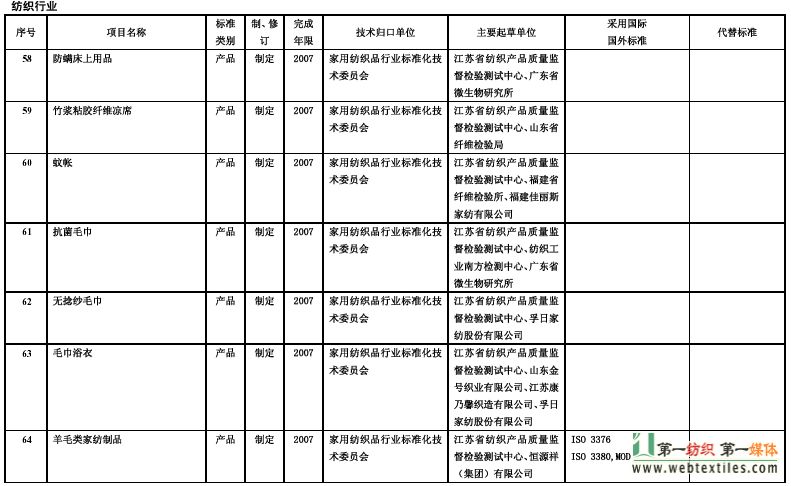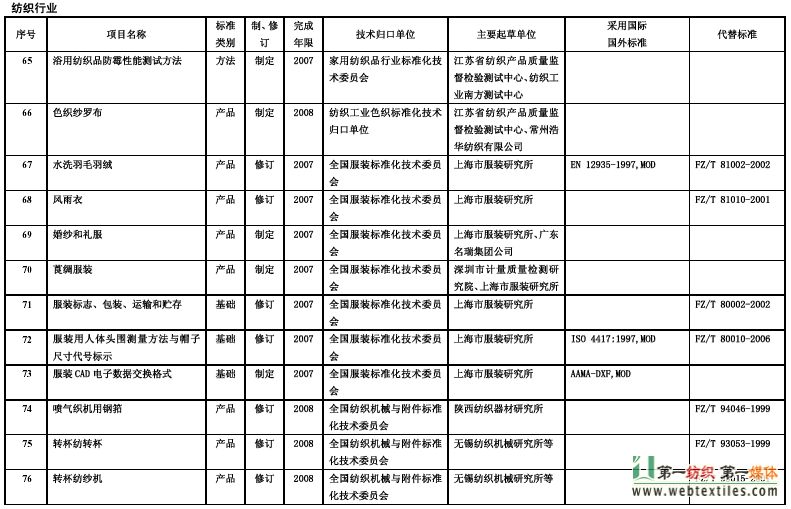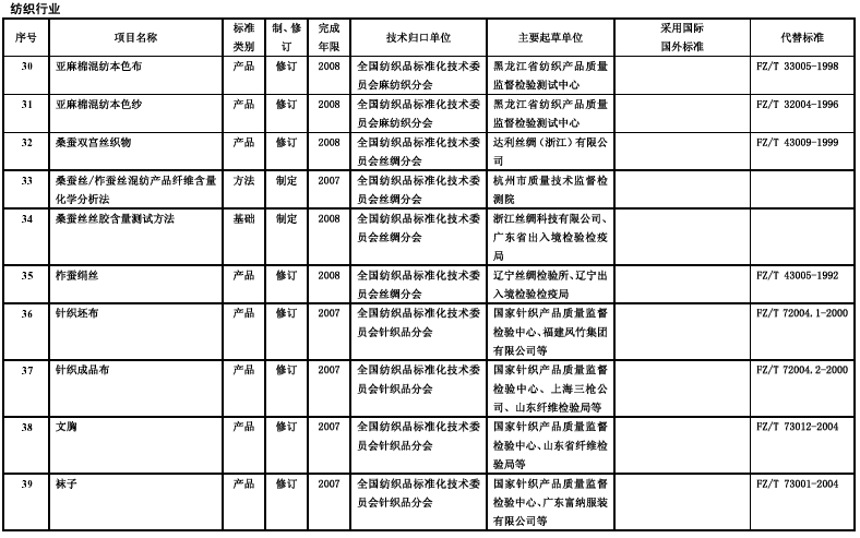 相关报道:2007年纺织行业标准修订、制定项目计划表下达