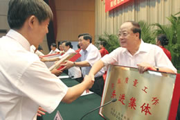 为表彰在质量工作中涌现出的先进典型,进一步调动广大企业和社会各方面的积极性,形成全社会关心质量、重视质量的良好氛围,全面提高我国产品质量、工程质量和服务质量总体水平,7月26日,全国质量工作先进集体和先进个人在京受到表彰。国家质检总局局长李长江,党组书记李传卿,人事部副部长尹蔚民,总局副局长支树平、蒲长城、魏传忠,党组成员郭汝斌、刘平均、宋明昌出席颁奖仪式并为获得先进称号的集体和个人颁奖。