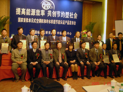 2005年3月29日,中标认证中心(原中国节能产品认证中心)在北京梅地亚中心举办了以“提高能源效率,共创节约型社会”为主题的国家首批单元式空调机和冷水机组节能认证产品发布会。本次发布会旨在进一步贯彻落实国务院《关于开展资源节约活动的通知》精神,推动节能产品政府采购工作的全面开展,同时向社会公布一批符合国家节能要求的产品,并对获得国家首批单元式空调机和冷水机组节能产品认证资格的12家制造商颁发国家认可证书。