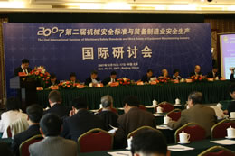 金秋十月,由国家标准化管理委员会和国家安全生产监督管理总局联合主办,机械科学研究总院、全国机械安全标准化技术委员会承办的《第二届机械安全标准与装备制造业安全生产国际研讨会》于2007年10月16日至17日在北京召开。来自德国、法国、加拿大、意大利和日本的机械安全领域的外国专家,机械安全相关各行业、企业的专家代表以及新闻记者240余人参加了研讨会。