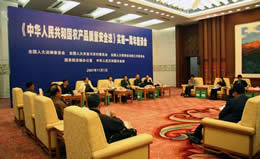 座谈会上,领导和专家分别就《农产品质量安全法》实施以来的情况提出了意见和建议。全国人大常委会法工委安建副主任,国务院法制办、中编办、发改委、财政部、公安部、商务部、卫生部、海关总署、工商总局、质检总局、环保总局、食药局等有关部门的领导,江苏省农林厅和中国农业大学的领导和专家,农业部相关司局、有关事业单位负责同志参加了座谈会。