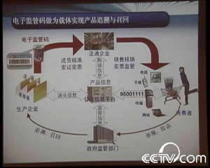 国家质检总局中国产品质量电子监管推进办主任 宋明昌:中国产品质量电子监管码对于在巩固专项整治的成果,建立长效机制,特别是建立产品的追溯机制将发挥重要的作用。可以从产品的原料、加工、生产的标准,检验和流通都可以在各个环节进行标注。