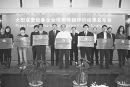 中国机电产品进出口商会2月29日在北京举行了“大型成套设备企业信用等级评价结果发布会”,中国机械设备进出口总公司、中国化学工程总公司等62家被评为AAA信用等级企业。