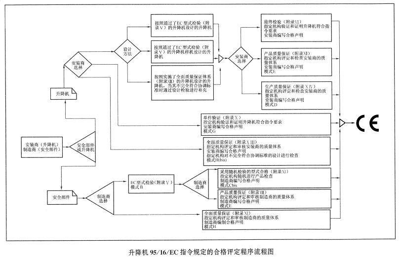 生产质量保证是履行本附录第2点规定义务的安装商保证并声明升降机符合对其适用的指令要求的程序。升降机安装商必须在每台升降机上加贴CE标志,并编写合格声明。CE标志后面必须附有本附录第4点规定的负责监督工作的指定机构编号。