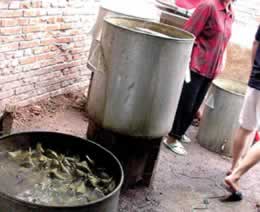 记者随后将此事反映给朝阳区卫生监督所。该所执法队员称,卫生部门已接到市民举报,他们会联合警方等相关部门查处这个黑作坊,并会追查黑粽子的去向。