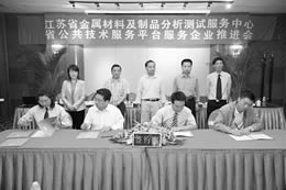 江苏常熟金属材料及制品分析测试技术服务中心是江苏检验检疫系统唯一的省级科技公共服务平台。该平台充分利用人员、技术、设备、信息等优势为217家企业提供了大量的技术服务。为进一步宣传该平台的技术水平、服务能力,日前该中心举行了服务企业推进会。图为推进会签约现场。