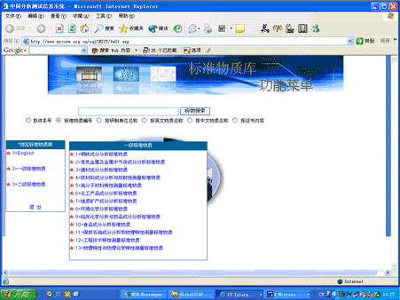 搜索标准物质数据库可使用两种方式:目录导航搜索和关键词全文搜索。