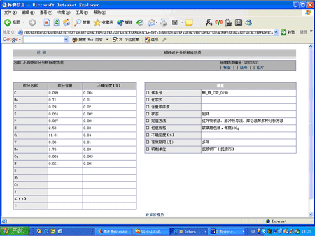 “标准物质信息收集及数据库建设”是《全国分析测试体系的建立与完善》课题中的子项目。主要工作任务是收集、翻译、录入美国、德国、法国、比利时、日本、斯洛伐克、保加利亚、瑞士等国家和国际上知名度较高的、有一定权威的机构或组织发布的标准物质信息,收集跟踪国内国家一级、二级标准物质和国家级标准样品,建立标准物质信息资源数据库,并在此基础上形成网络平台,为全社会提供信息服务,实现资源共享。