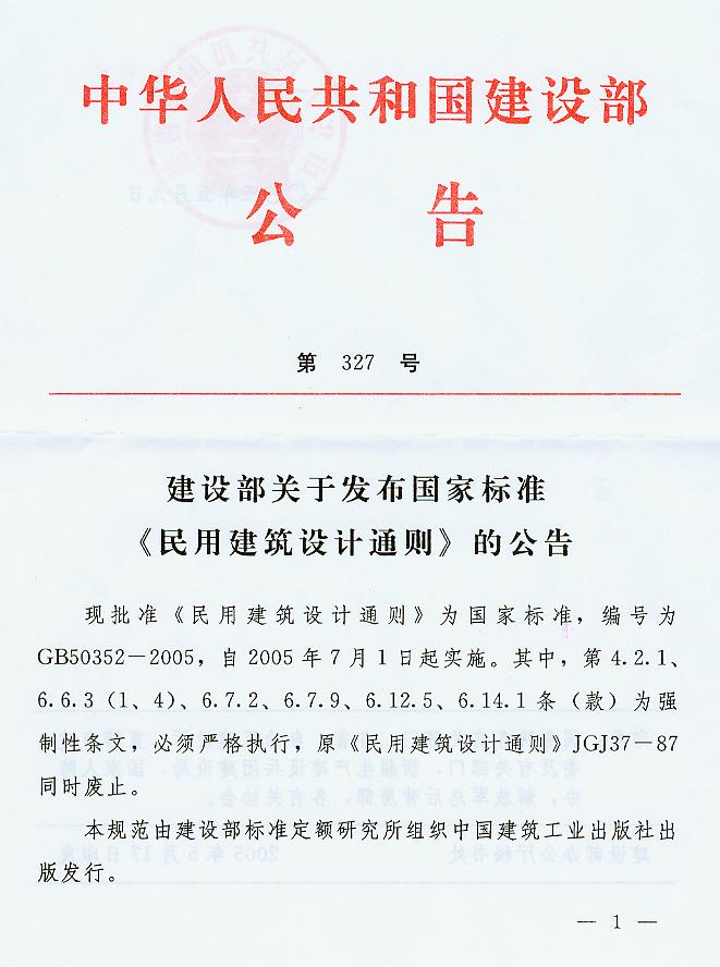 关于发布国家标准《民用建筑设计通则》的公告