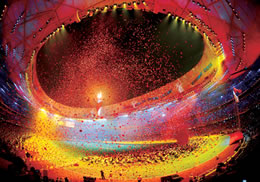 今晚的国家体育场内洋溢着热烈、喜庆的气氛。