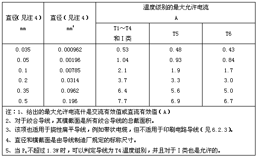 在Pi不大于1.3W时,印制导线应是给出的T4或Ⅰ类温度组别。