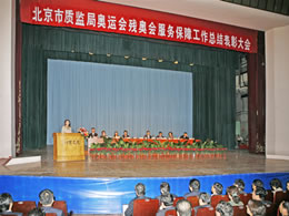 10月10日,北京市质监局召开奥运会、残奥会服务保障工作表彰总结大会。北京市政府副市长程红,北京市质监局领导班子全体成员出席了会议,市质监系统千余名干部职工参加了大会。