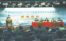 11月18日,宁波检验检疫局召开ISO9000质量管理体系认证五周年总结表彰大会及获证五周年纪念论坛。来自北京、上海、江苏等局的体系专家及宁波市部分实施体系管理单位的专家出席了此次纪念论坛。会议表彰了宁波局在ISO9000实践方面做出努力的先进集体和个人,同时对获奖征文进行颁奖。