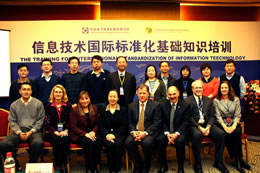 中国电子技术标准化研究所于2008年12月11日至12日在北京九华山庄成功举办“信息技术国际标准化基础知识培训班”。会上,林宁副所长首先向来华讲学的国外专家表示感谢并向参加培训的学员表示欢迎,会议由信息技术研究中心高麟鹏同志主持。ISO/IEC JTC1主席Karen Higginbottom、微软公司的Amy Marasco和甲骨文公司Don Deutsch等三位IT行业国际知名的标准化专家为培训班授课。国标委、美国国家标准协会、Intel、Panasonic公司和我们所各部、室、中心近70人参加了培训。同时,所国际标准化部向参加所内第一期国际标准化英语培训的学员颁发了培训证书。