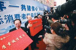 本报讯 3月15日,以“质量安全年——共建信心 共促发展”为主题的“3·15国际消费者权益日宣传咨询服务活动”在北京王府井大街隆重举行。国家质检总局副局长支树平、北京市副市长苟仲文出席活动。