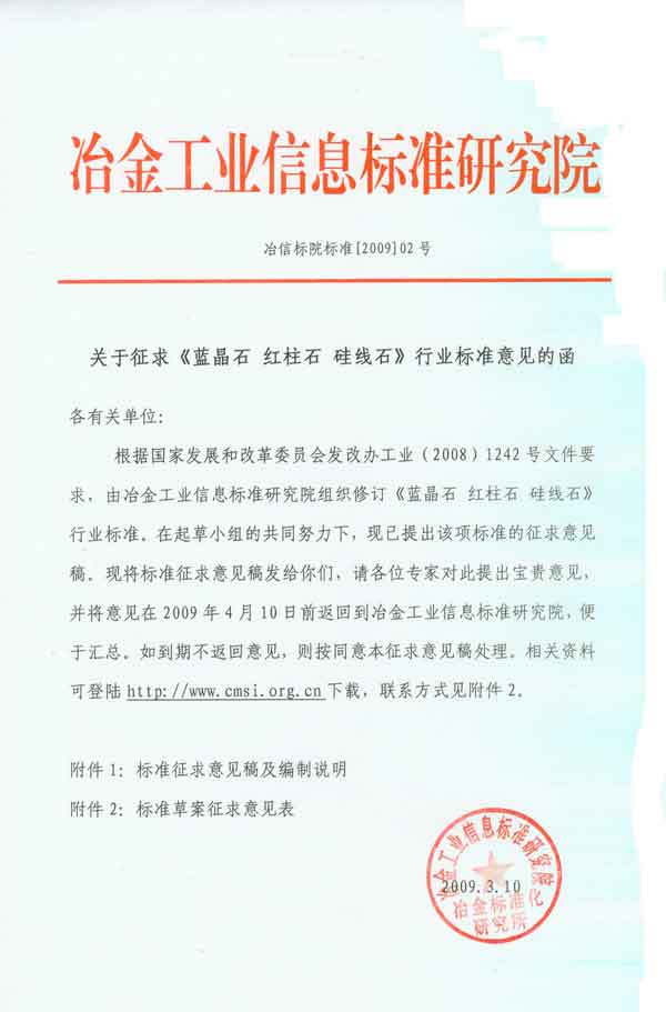《蓝晶石、红柱石、硅线石》行业标准征求意见
