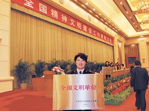2002年10月,吉林检验检疫局首次获得“全国精神文明建设工作先进单位”的称号,这在国家质检总局直属局中是第一家。2005年,吉林检验检疫局再次获得了“全国精神文明建设工作先进单位”殊荣。那时,激动、兴奋、自豪之情弥漫在吉林局的每个角落。然而,就在接过“全国文明单位”这崇高荣誉的刹那,党组一班人分明感受到一种压力——如何保持荣誉并使之跃上新台阶。他们已把目光投向未来。