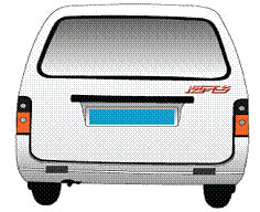 四、汽车经销商在将汽车下乡产品销售给农民时,须在尾部外表面显著位置(在保险杠之上的后部车身表面)上标注汽车下乡标识,示例如下: