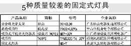 7月17日,国家质检总局公布了固定式灯具的质量抽查结果。这次共抽查了全国81种固定式灯具产品,合格47种,产品抽样合格率为58.0%。其中,中山市能者电子有限公司生产的能之宝牌高亮吸顶灯等5种产品(见上表)被曝光。 抽查不合格的产品主要问题是灯座起不到防触电保护作用、耐久性项目不合格等。