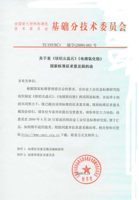 《铝镁尖晶石》《电熔氧化锆》国家标准征求意见