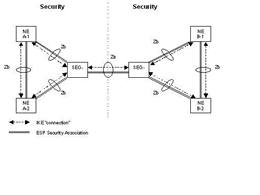 Za: 在不同的网络域安全的接口.使用IKE [5] 协议来协商, 建立, 和维护在他们之间的用来保护ESP隧道的安全参数.然后依据此参数使用IPSec ESP隧道模式来进行保护.