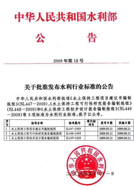 《水土保持工程项目建议书编制规程》等标准发布