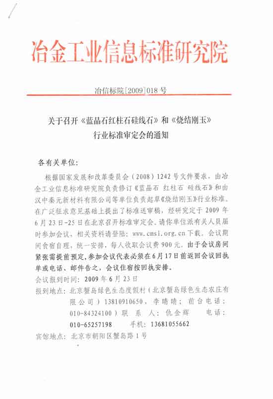 关于召开《蓝晶石红柱石硅线石》等标准审定会的通知