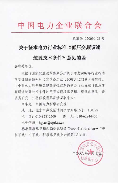 《低压变频调速装置技术条件》征求意见