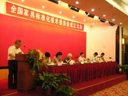 2009年6月23日,全国家具标准化技术委员会(SAC/TC480)成立大会暨第一届一次委员会议在北京召开。 出席本次会议的还有中国国家标准化管理委员会副主任石保权、中国轻工业联合会副会长杜同和、杨立,工业标准二部主任刘霜秋、中国工业和信息化部消费品工业司处长汪敏燕、广东省质量技术监督局标准处副处长张定康、中国家具协会和各省市的家具行业协会的代表和家具标委会委员共100余人。