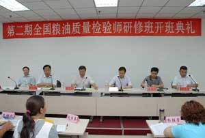 为贯彻落实国家高技能人才培养政策,不断探索粮油质量检验领域高技能人才的培养和评价方法,2009年7月20日,受国家粮食局人事司委托,在中储粮吉林质量检测中心举办了第二期全国粮油质量检验师研修班,来自全国11个省(区、市)和有关中央企业的58名粮油质量检验人员参加了本期研修班。