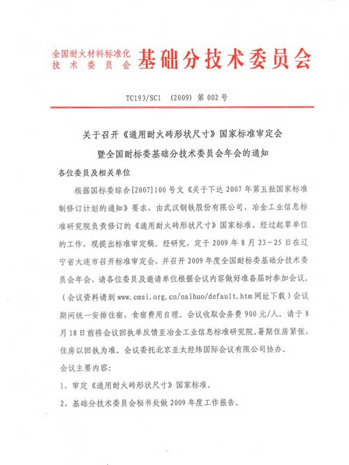 全国耐标委基础分会召开年会与标准审定会的通知