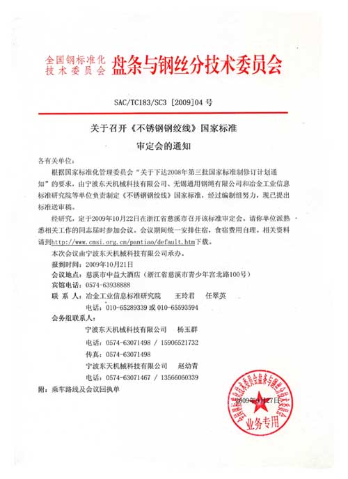 关于召开《不锈钢钢绞线》国家标准审定会的通知