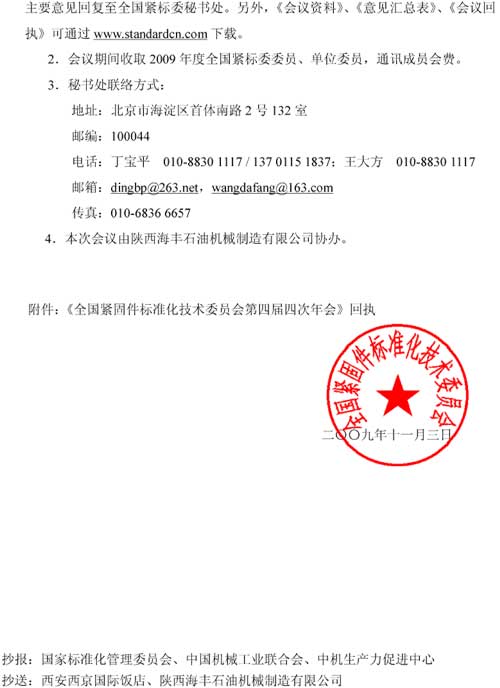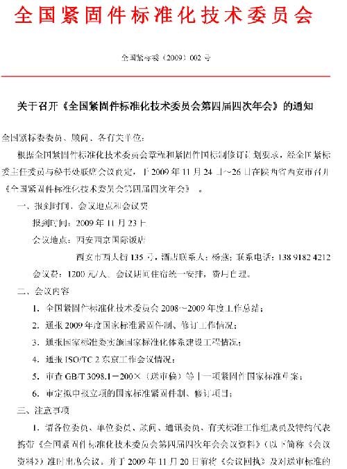 关于召开《全国紧固件标准化技术委员会第四届四次年会》的通知
